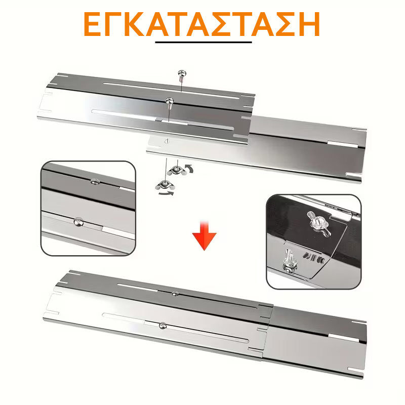 Σταθεροποιειται στο μηκος που θελετε με βιδες και παξιμαδια πεταλουδα (περιεχονται)